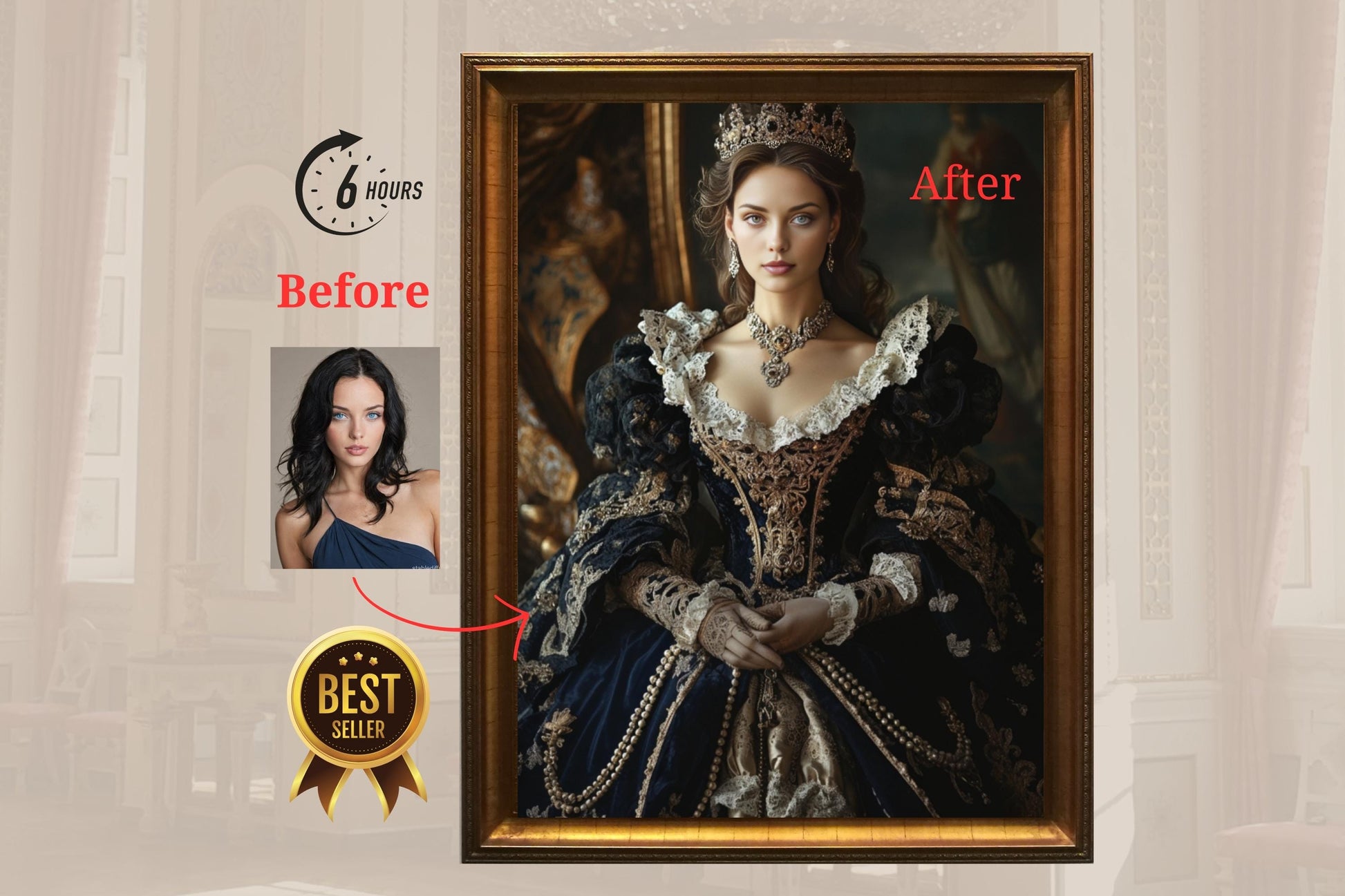 • Satisfaction Guarantee: While Etsy doesn’t offer refunds for digital files, I stand by my work. If you’re not fully satisfied with your custom royal portrait, I will issue an immediate refund—no questions asked!