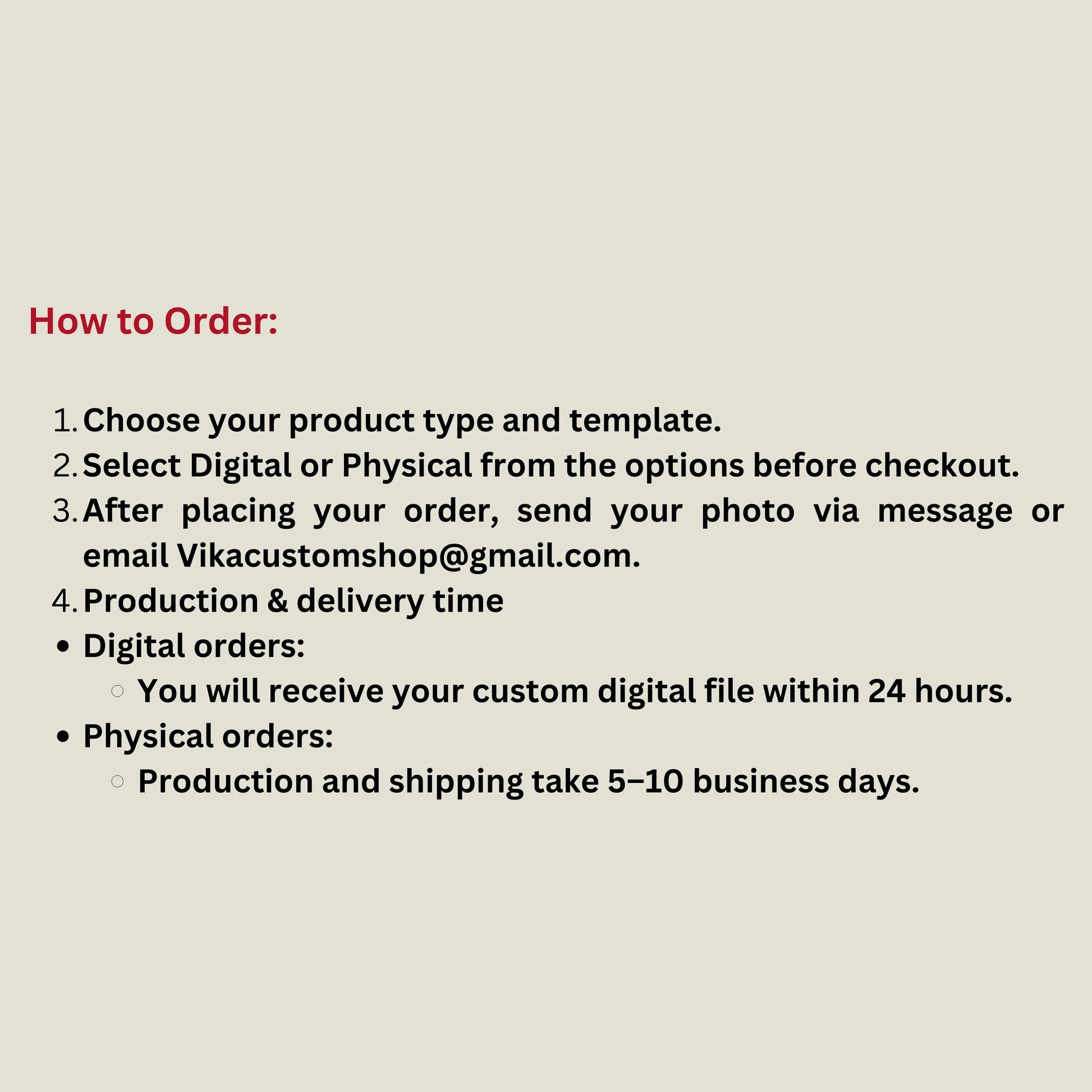 Physical orders: Produced and shipped in 5–10 business days